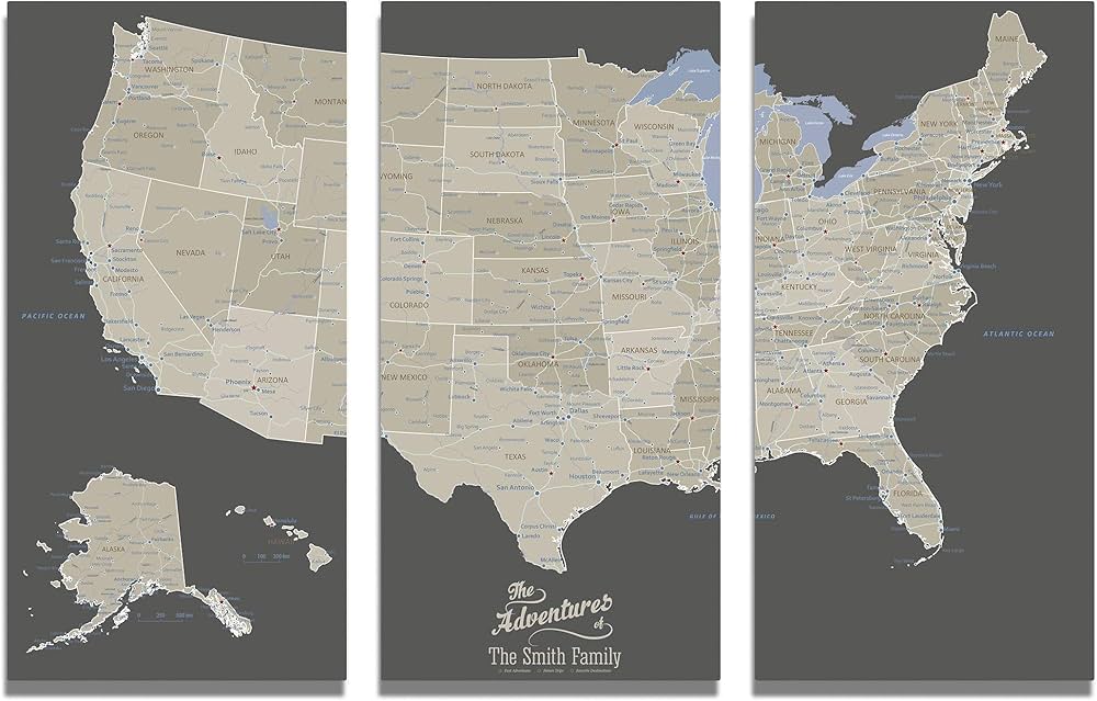 Amazon.com: 3 paneles Mapa de pasador de viaje de Estados Unidos