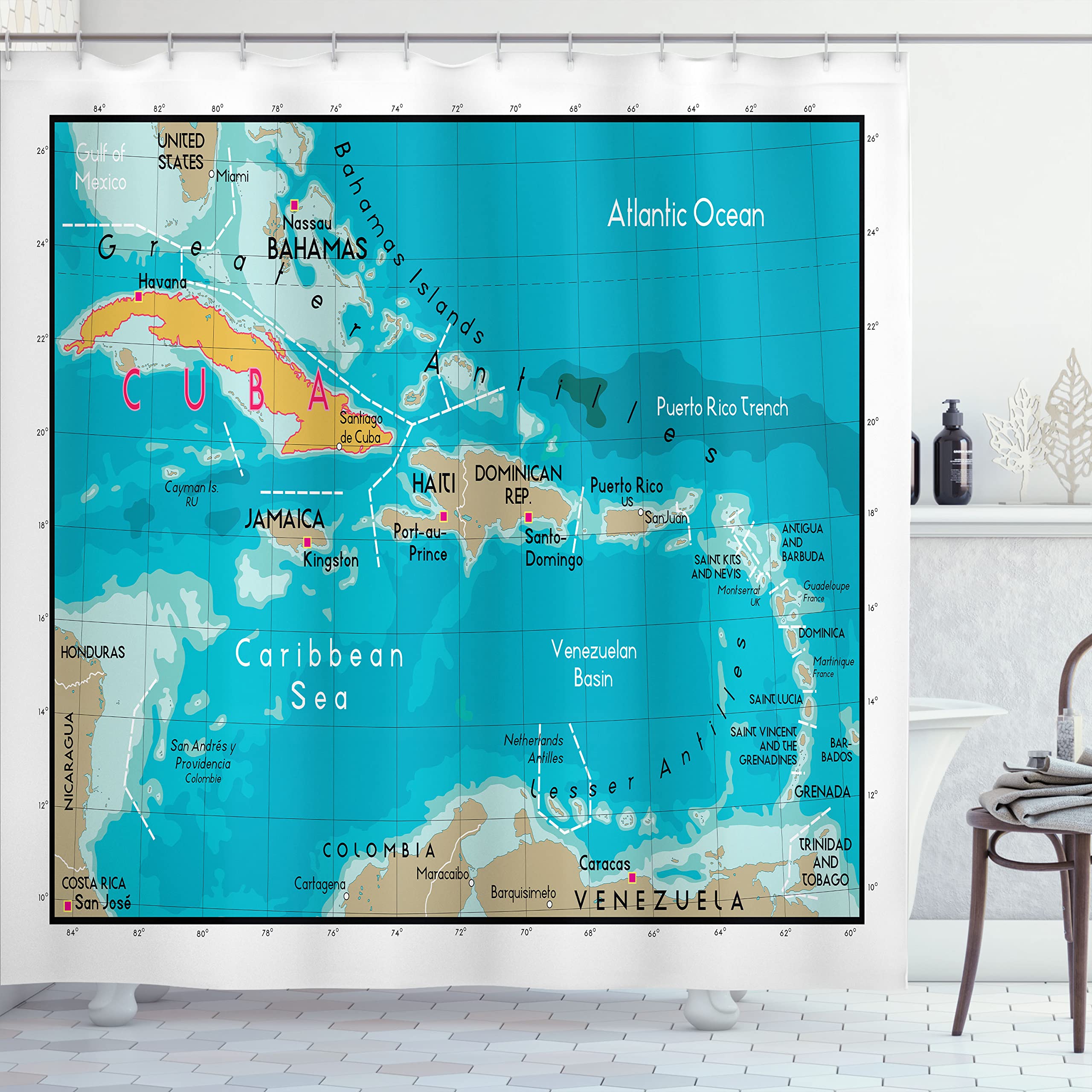 Amazon.com: ambesonne Wanderlust Decor Collection, Cuba Mapa y el