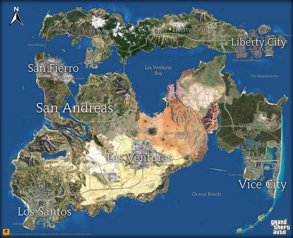 GTA Concept Map ALL Grand Theft Auto Cities On One Map