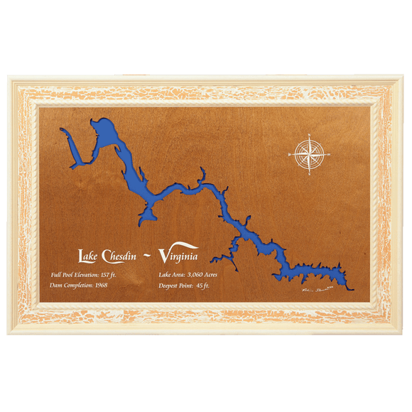 Lake Chesdin, Virginia Stained Wood and Distressed White Frame